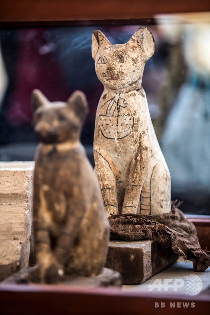 【11月24日 AFP】エジプト考古省は23日、首都カイロ南郊の古代都市サッカラ(Saqqara)で、象形文字による装飾が施されたライオンの赤ちゃんのミイラ5体と、猫の像75体を公開した。