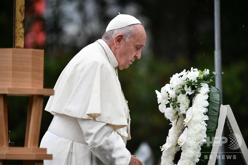 【11月24日 AFP】(更新、写真追加)日本を訪問しているローマ・カトリック教会のフランシスコ教皇(Pope Francis、82)は24日、被爆地の長崎市を訪れた。爆心地公園で行ったスピーチで教皇は、核兵器の使用と拡大する武器取引を激しく批判し、1945年8月の原爆で「言葉にできない恐怖」を受けた人たちに思いを寄せた。