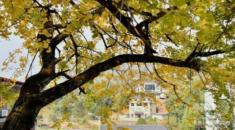 伝統の村で百歳のイチョウが黄金色に 中国・福建省