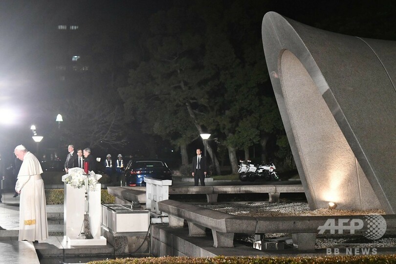 【11月24日 AFP】来日中のローマ・カトリック教会のフランシスコ教皇(Pope Franci)は24日午後、長崎から広島に移動し、市内にある平和記念公園で核兵器の使用は「犯罪」だと訴えた。