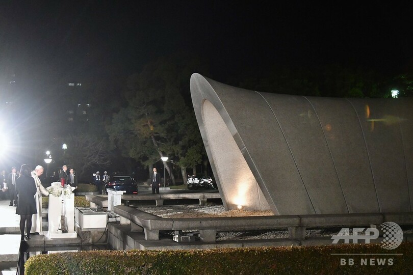 【11月24日 AFP】来日中のローマ・カトリック教会のフランシスコ教皇(Pope Franci)は24日午後、長崎から広島に移動し、市内にある平和記念公園で核兵器の使用は「犯罪」だと訴えた。