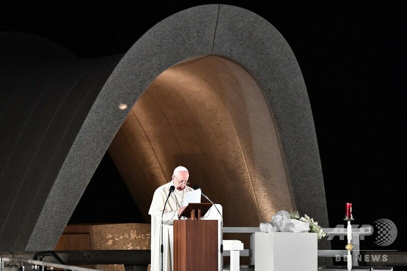 【11月24日 AFP】来日中のローマ・カトリック教会のフランシスコ教皇(Pope Franci)は24日午後、長崎から広島に移動し、市内にある平和記念公園で核兵器の使用は「犯罪」だと訴えた。