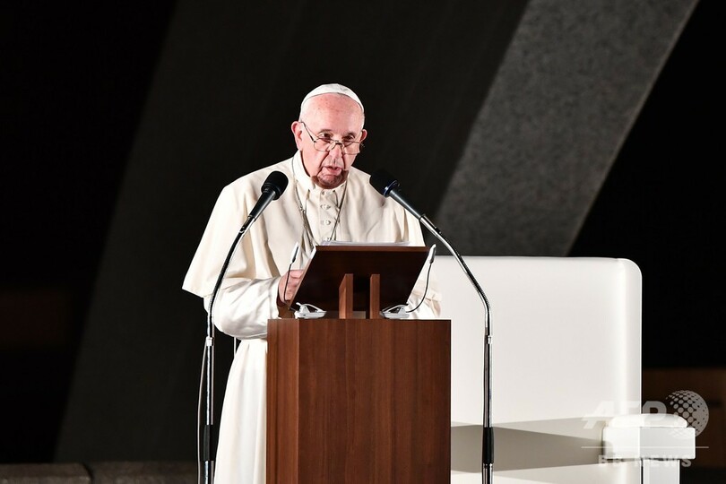 【11月24日 AFP】来日中のローマ・カトリック教会のフランシスコ教皇(Pope Franci)は24日午後、長崎から広島に移動し、市内にある平和記念公園で核兵器の使用は「犯罪」だと訴えた。