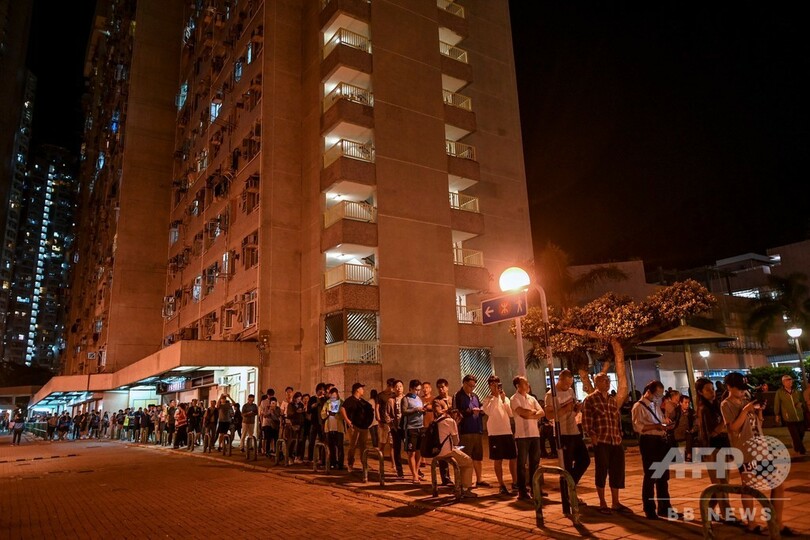 香港全域の18区議会選の投票所には長蛇の列ができた。選挙管理委員会は有権者登録した413万人のうち約71%が投票したと発表。1997年に英国から返還されて以降、香港の区議会選史上で最高の投票率だ。