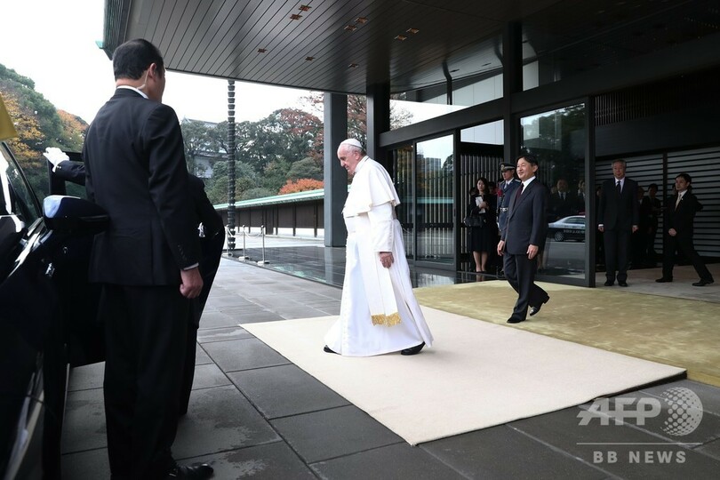 ニュース 社会 フランシスコ教皇、皇居で天皇陛下と会見 2019年11月25日 13:37 発信地:東京 [ 日本 アジア・オセアニア ] このニュースをシェア ‹ › ❮ 7/10 ❯ 天皇陛下との会見を終え、皇居を後にするフランシスコ教皇(2019年11月25日撮影)。(c)Behrouz MEHRI / AFP 画像作成中 ! 【11月25日 AFP】日本を訪問しているローマ・カトリック教会のフランシスコ教皇(Pope Francis)は25日、皇居で天皇陛下と会見を行った。(c)AFP 社会 一覧へ> メディア・報道関係・法人の方向け 写真・動画 購入のお問合せ>