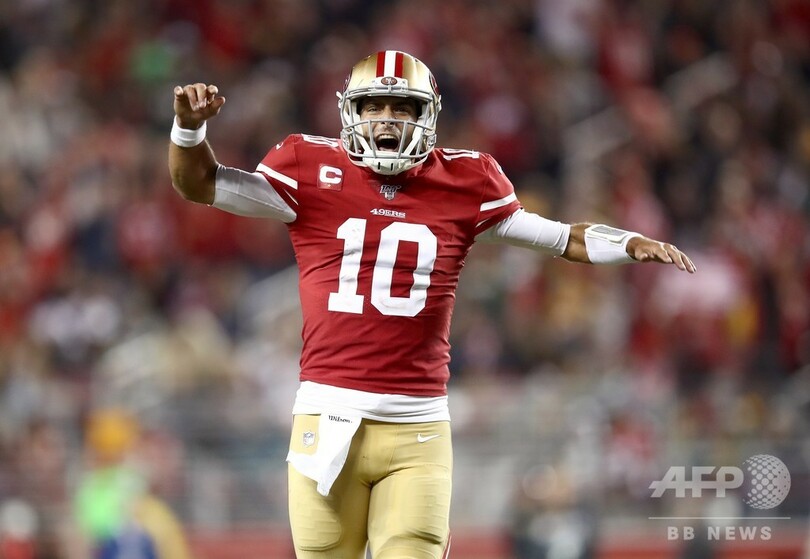パッカーズのQBアーロン・ロジャース(Aaron Rodgers)の獲得距離を104ヤードに抑え込み、5サックを記録するなど守備陣が健闘したフォーティナイナーズでは、QBジミー・ガロポロ(Jimmy Garoppolo)が20本中14本のパスを成功させて計253ヤードを稼ぎ、2本のタッチダウンパスを通した。(c)AFP