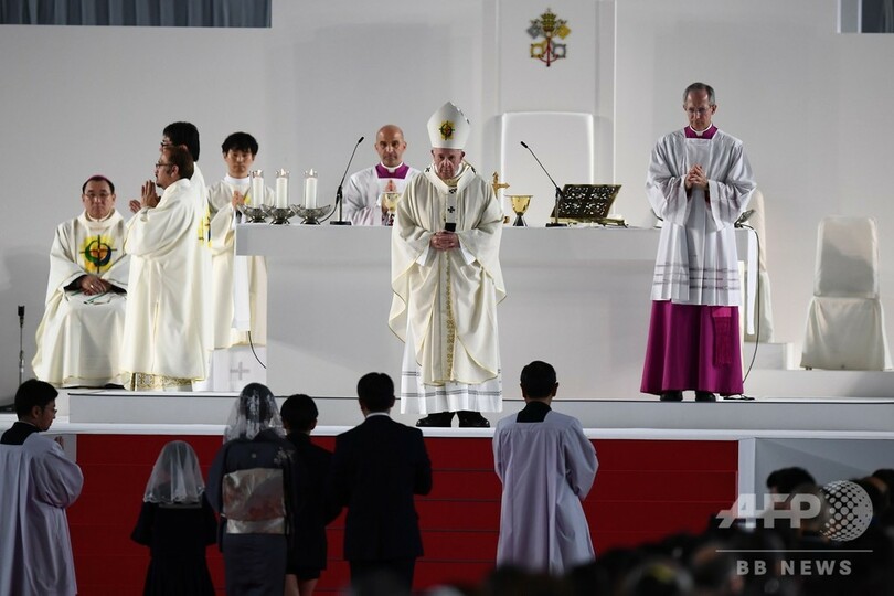 【11月25日 AFP】来日しているローマ・カトリック教会のフランシスコ教皇(Pope Francis、82)は25日午後、都内にある東京ドーム(Tokyo Dome)でミサを執り行った。
