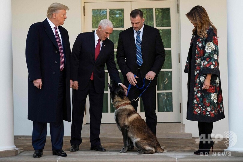 トランプ氏は、ホワイトハウス(White House)で行われた短い式典で、調教師のそばに座ったコナンを「素晴らしい」と称賛。「とても立派で、とても賢い。コナンは素晴らしい働きをした」と述べた。式典にはメラニア(Melania Trump)大統領夫人とマイク・ペンス(Mike Pence)副大統領も出席した。