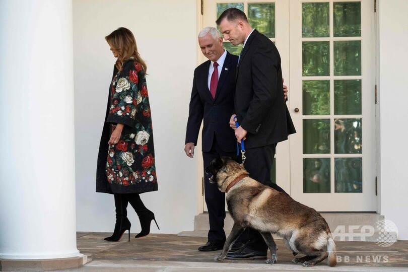 トランプ氏は、ホワイトハウス(White House)で行われた短い式典で、調教師のそばに座ったコナンを「素晴らしい」と称賛。「とても立派で、とても賢い。コナンは素晴らしい働きをした」と述べた。式典にはメラニア(Melania Trump)大統領夫人とマイク・ペンス(Mike Pence)副大統領も出席した。