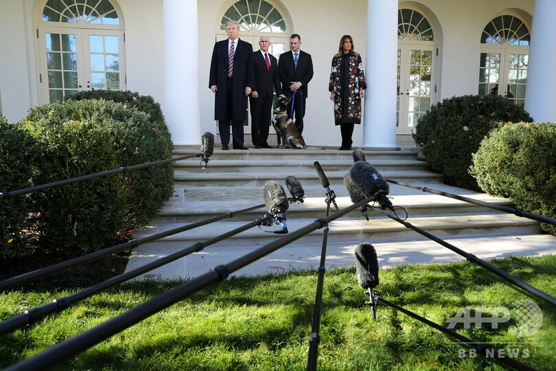 【11月26日 AFP】ドナルド・トランプ(Donald Trump)米大統領は25日、米軍がシリアで実施したイスラム過激派組織「イスラム国(IS)」の最高指導者アブバクル・バグダディ(Abu Bakr al-Baghdadi)容疑者急襲作戦に参加し英雄となった軍用犬コナン(Conan)を披露した。