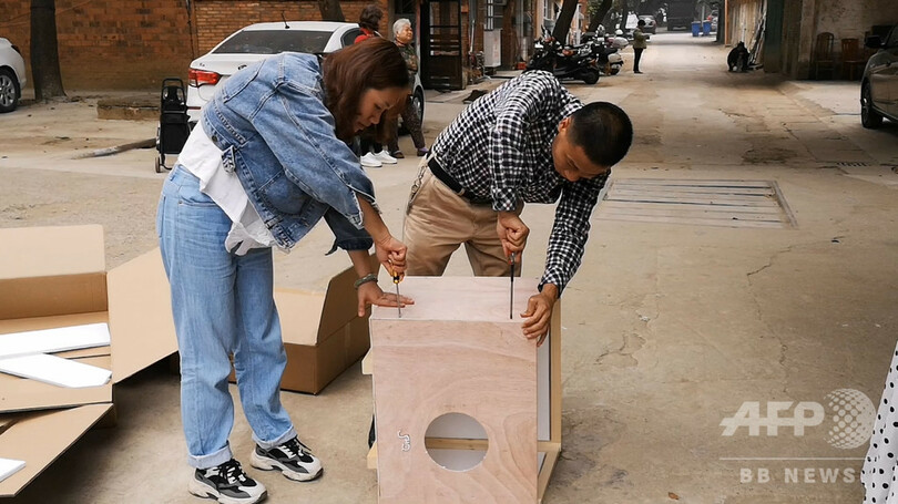 同市のボランティア、王晶晶(Wang Jingjing)さんによると、五菱(Wuling)居住区には家なし猫が多くおり、10個の猫の家を設置する。設置後は、ボランティアが定期的に猫の面倒を見ていくという。