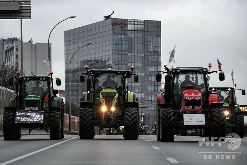 トラクター1000台パリに集結、農家が政府の政策に抗議