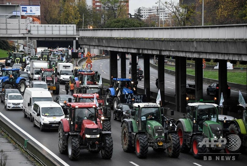 【11月27日 AFP】フランスで27日、農家らがトラクター1000台で首都パリに集結し、エマニュエル・マクロン(Emmanuel Macron)政権の政策に抗議した。農業従事者らの苦境を訴えるとともに、スーパーチェーンに対しては農産物の買い取り価格を引き上げるよう要求した。