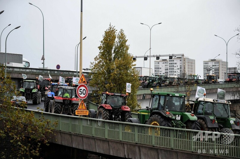 【11月27日 AFP】フランスで27日、農家らがトラクター1000台で首都パリに集結し、エマニュエル・マクロン(Emmanuel Macron)政権の政策に抗議した。農業従事者らの苦境を訴えるとともに、スーパーチェーンに対しては農産物の買い取り価格を引き上げるよう要求した。