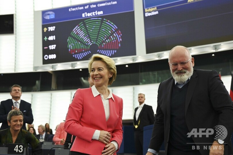 【11月28日 AFP】欧州連合(EU)は27日、行政執行機関である欧州委員会(European Commission)の次期委員長として、ドイツの前国防相で保守派のウルズラ・フォンデアライエン(Ursula von der Leyen)氏(61)を承認した。閣僚に相当する欧州委員候補らも併せて承認されており、来月1日に新体制が発足する。