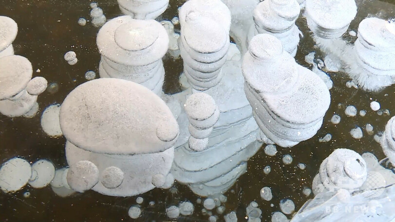 芸術的な自然現象「氷の泡」に観光客が殺到 「中国の北極」漠河市