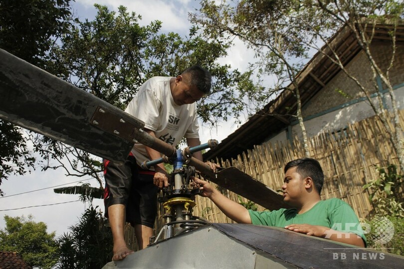 【11月28日 AFP】インドネシアは深刻な交通渋滞を抱えることで知られ、通勤者は皆うんざりしている。そこである男性が、この毎日の不快を解消するため上空を飛ぼうと決意。その手段として、自分でヘリコプターを造ることにしたという。