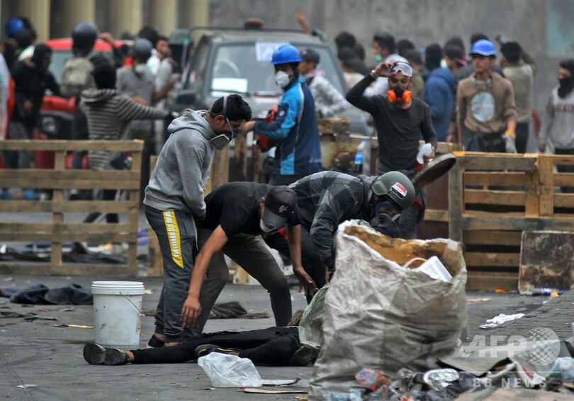 首都バグダッドと同国南部での抗議デモでは、2003年の米主導の侵攻によるサダム・フセイン(Saddam Hussein)政権崩壊以降のものとしては、最も多くの犠牲者が出ている。デモ参加者は政府と、政府への影響力を強めるイランに対し激しい怒りを向けている。27日夜には、自国の政治へのイランの影響に激怒したデモ隊が、イスラム教シーア派の聖地ナジャフ(Najaf)のイラン領事館に放火。「イラクに勝利を!」「イランは出て行け!」と連呼した。