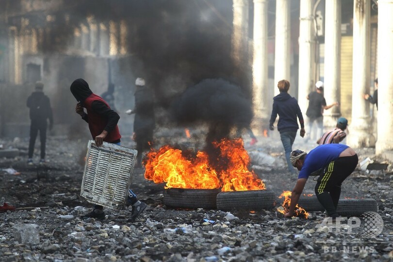 首都バグダッドと同国南部での抗議デモでは、2003年の米主導の侵攻によるサダム・フセイン(Saddam Hussein)政権崩壊以降のものとしては、最も多くの犠牲者が出ている。デモ参加者は政府と、政府への影響力を強めるイランに対し激しい怒りを向けている。27日夜には、自国の政治へのイランの影響に激怒したデモ隊が、イスラム教シーア派の聖地ナジャフ(Najaf)のイラン領事館に放火。「イラクに勝利を!」「イランは出て行け!」と連呼した。