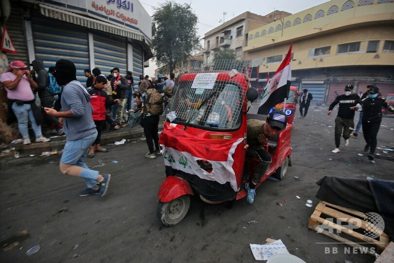 首都バグダッドと同国南部での抗議デモでは、2003年の米主導の侵攻によるサダム・フセイン(Saddam Hussein)政権崩壊以降のものとしては、最も多くの犠牲者が出ている。デモ参加者は政府と、政府への影響力を強めるイランに対し激しい怒りを向けている。27日夜には、自国の政治へのイランの影響に激怒したデモ隊が、イスラム教シーア派の聖地ナジャフ(Najaf)のイラン領事館に放火。「イラクに勝利を!」「イランは出て行け!」と連呼した。
