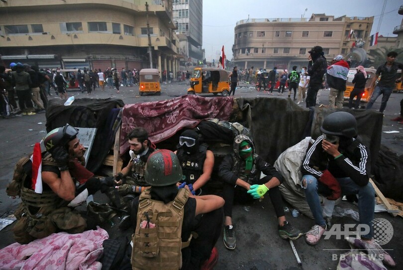 首都バグダッドと同国南部での抗議デモでは、2003年の米主導の侵攻によるサダム・フセイン(Saddam Hussein)政権崩壊以降のものとしては、最も多くの犠牲者が出ている。デモ参加者は政府と、政府への影響力を強めるイランに対し激しい怒りを向けている。27日夜には、自国の政治へのイランの影響に激怒したデモ隊が、イスラム教シーア派の聖地ナジャフ(Najaf)のイラン領事館に放火。「イラクに勝利を!」「イランは出て行け!」と連呼した。