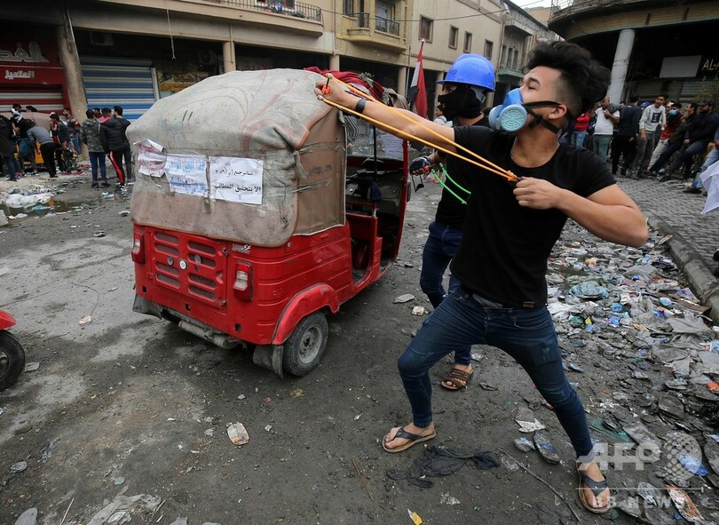 首都バグダッドと同国南部での抗議デモでは、2003年の米主導の侵攻によるサダム・フセイン(Saddam Hussein)政権崩壊以降のものとしては、最も多くの犠牲者が出ている。デモ参加者は政府と、政府への影響力を強めるイランに対し激しい怒りを向けている。27日夜には、自国の政治へのイランの影響に激怒したデモ隊が、イスラム教シーア派の聖地ナジャフ(Najaf)のイラン領事館に放火。「イラクに勝利を!」「イランは出て行け!」と連呼した。