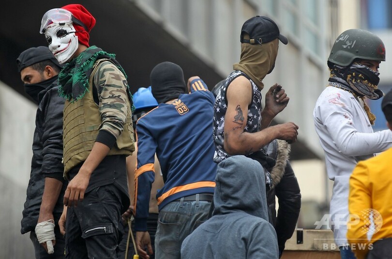 首都バグダッドと同国南部での抗議デモでは、2003年の米主導の侵攻によるサダム・フセイン(Saddam Hussein)政権崩壊以降のものとしては、最も多くの犠牲者が出ている。デモ参加者は政府と、政府への影響力を強めるイランに対し激しい怒りを向けている。27日夜には、自国の政治へのイランの影響に激怒したデモ隊が、イスラム教シーア派の聖地ナジャフ(Najaf)のイラン領事館に放火。「イラクに勝利を!」「イランは出て行け!」と連呼した。