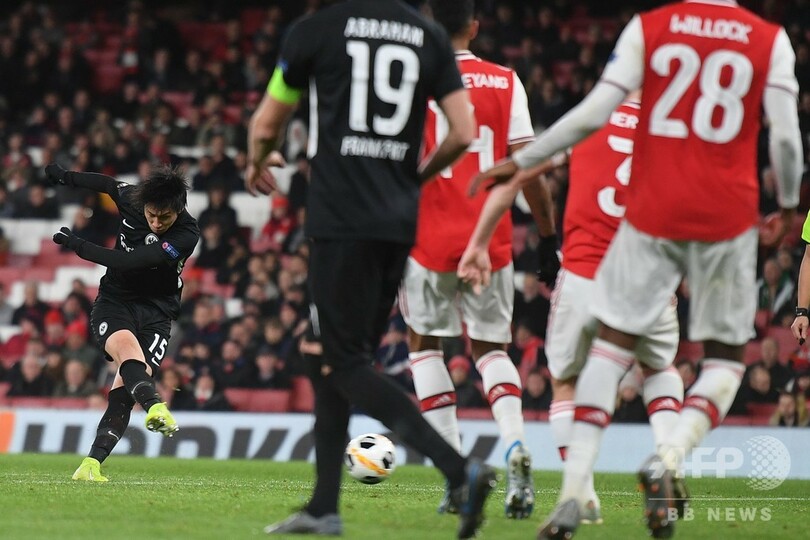 【11月29日 AFP】サッカーヨーロッパリーグ(UEFA Europa League 2019-20)は28日、グループF第5節が各地で行われ、アーセナル(Arsenal)は日本代表MF鎌田大地(Daichi Kamada)に2ゴールを許し、本拠地エミレーツ・スタジアム(Emirates Stadium)でフランクフルト(Eintracht Frankfurt)に1-2で敗れた。