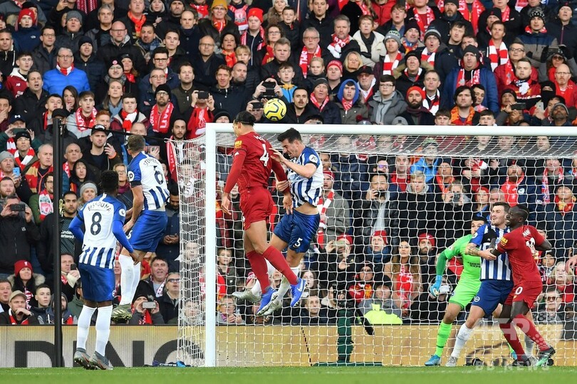 ブライトン・アンド・ホーヴ・アルビオンFC(Brighton & Hove Albion FC)をホームに迎えたリバプールは、2日に発表される2019年のバロンドール(Ballon d’Or)をリオネル・メッシ(Lionel Messi)らと争うビルヒル・ファン・ダイク(Virgil Van Dijk)が、セットプレーからトレント・アレクサンダー・アーノルド(Trent Alexander-Arnold)のキックに頭で合わせて2点を決め、25分までに2点のリードを奪った。