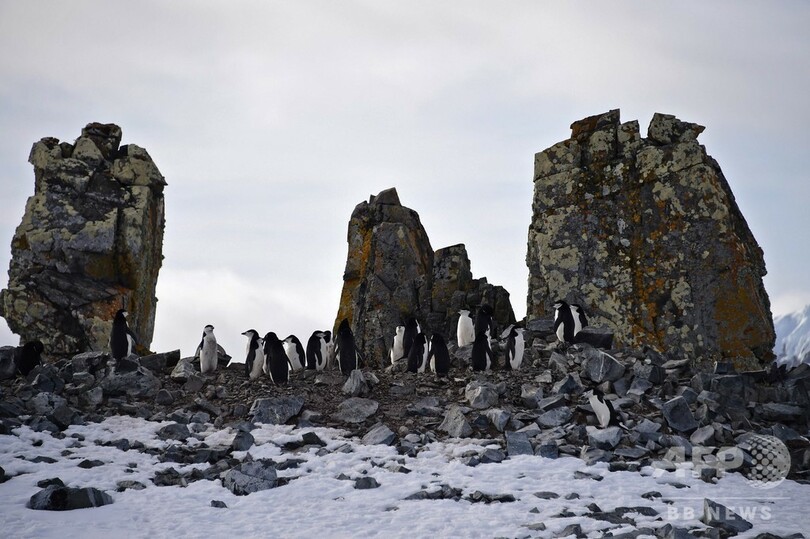 ハーフムーン島にはヒゲペンギン約2500羽が生息し、春の繁殖期には島を歩き回るが、その数は徐々に減ってきている。生息数減少の原因が人間にあるのかどうかは分かっていない。(c)AFP