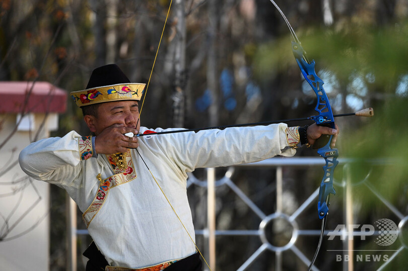 民族衣装をまとった住民たちは青稞(ハダカムギ)酒で乾杯し、弓矢を競い合ったり、縁起の良い飾り物を出したり、盛大に正月を祝っていた。(c)CNS/JCM/AFPBB News