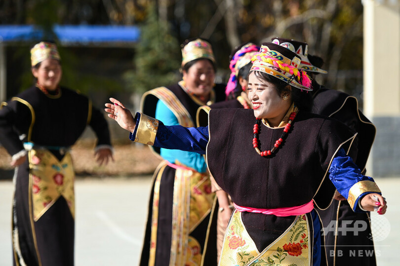 民族衣装をまとった住民たちは青稞(ハダカムギ)酒で乾杯し、弓矢を競い合ったり、縁起の良い飾り物を出したり、盛大に正月を祝っていた。(c)CNS/JCM/AFPBB News