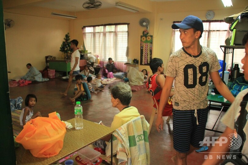 同国の気象当局は、雨による土砂崩れや、東部沿岸地域で最高3メートルの高潮が発生する恐れがあると注意を促した。(c)AFP/Mikhail FLORES