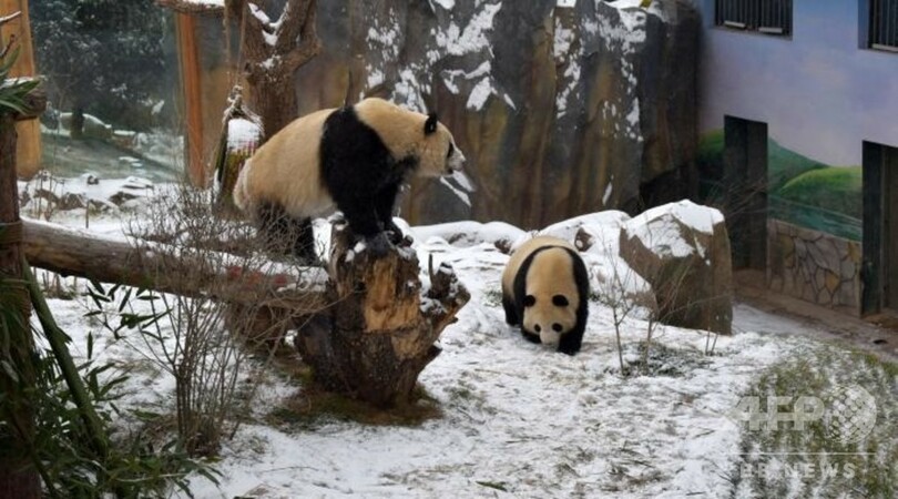 スタッフによると、パンダの生活に適した気温は26度から氷点下5度まで。丸々とした体形、体毛がフサフサしたパンダは寒さに基本的に強いが、氷点下5度以下になると暖房を入れ、スタッフがパンダの体調に気を配り、異常がありそうならすぐに必要な措置を取るという。(c)CNS/JCM/AFPBB News
