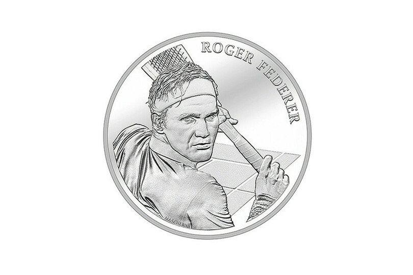 フェデラーを象徴する片手バックハンドがデザインとなっている。また、存命中の人物が同国の記念硬貨のデザインになるのは初めてだという。(c)AFP