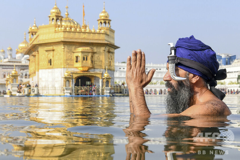 【12月12日 AFP】インド・アムリツァル(Amritsar)にあるシーク教総本山「黄金寺院(Golden Temple)」で、9代目グルのグル・テグ・バハドゥール(Guru Tegh Bahadur Sahib)の殉教の日に合わせ、沐浴(もくよく)するシーク教徒。(c)AFP
