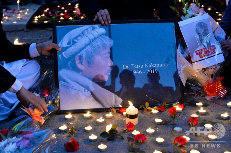 アフガニスタンの首都カブールでは国内各地から100人以上が集まり、「真の英雄」との横断幕を掲げながらろうそくをともして中村さんをしのんだ。