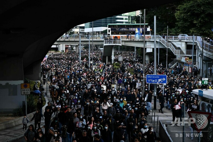 香港で大規模デモ、80万人が参加 主催者発表