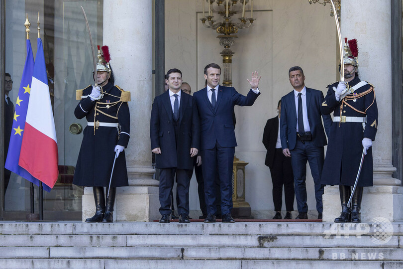 エリゼ宮では仏独首脳を含めた4者会談が行われた後、待ち望まれていたプーチン・ゼレンスキー両氏の2者会談が行われる。(c)AFP/Stuart WILLIAMS and Valerie LEROUX