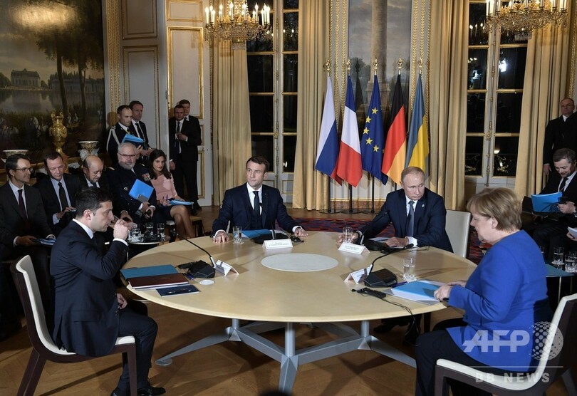 【12月10日 AFP】仏パリのエリゼ宮(Elysee Palace、大統領府)で9日、ロシアのウラジーミル・プーチン(Vladimir Putin)大統領とウクライナのウォロディミル・ゼレンスキー(Volodymyr Zelensky)大統領との初の首脳会談が始まった。両首脳は会談で、ウクライナ東部での5年に及ぶ紛争の終結に向けた措置での合意を目指す。
