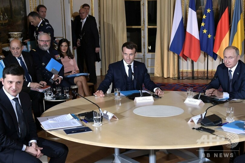 【12月10日 AFP】仏パリのエリゼ宮(Elysee Palace、大統領府)で9日、ロシアのウラジーミル・プーチン(Vladimir Putin)大統領とウクライナのウォロディミル・ゼレンスキー(Volodymyr Zelensky)大統領との初の首脳会談が始まった。両首脳は会談で、ウクライナ東部での5年に及ぶ紛争の終結に向けた措置での合意を目指す。