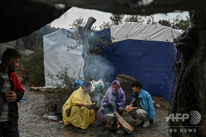 寒さと雨に凍える難民 スラム街と化したキャンプ ギリシャ