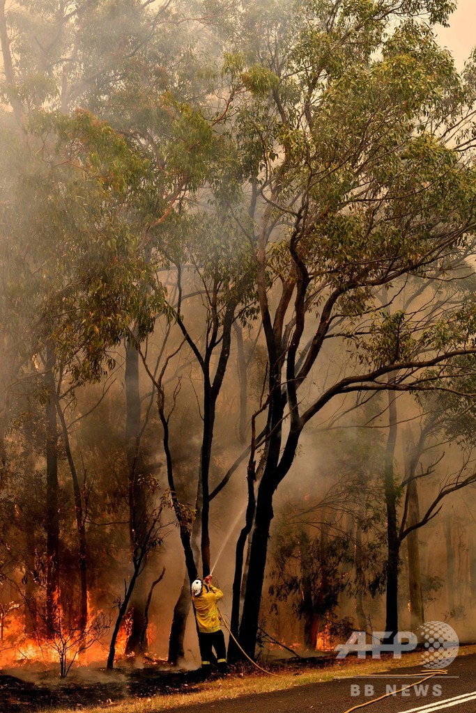 シドニー北西部では、数週間続いた複数の森林火災が合流して「メガ火災」になっており、国立公園を中心に既に31万9000ヘクタールが焼失している。(c)AFP/Andrew BEATTY, with Daniel de Carteret in Gosford