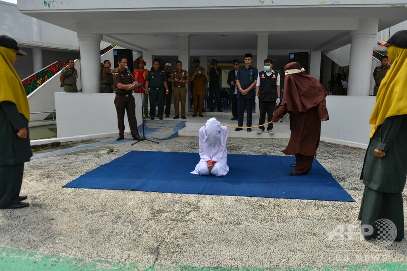 夫ではない男性のそばにいた女性、公開むち打ち刑に インドネシア