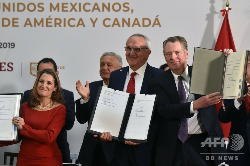 【12月11日 AFP】(写真追加)米国とメキシコ、カナダは10日、2年超に及ぶ困難な交渉の末、新たな北米貿易協定「米・メキシコ・カナダ協定(USMCA)」の一部修正に合意した。