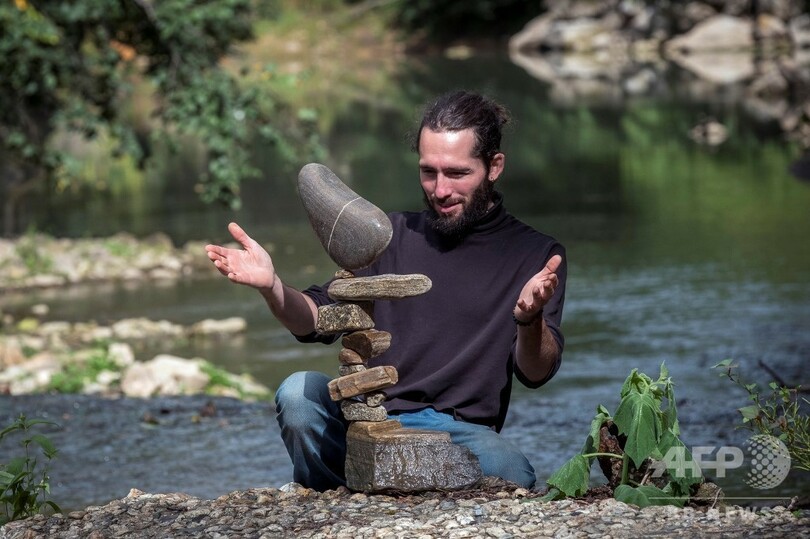 【1月3日 AFP】人間は太古の昔から石を積み重ねてきたが、石を「浮かび上がらせる」ことに力を注ぐ男性がいる。アーティストのSP・ランザ(SP Ranza)さん(33)だ。SP・ランザさんは「石のバランス」の達人で、2019年4月、英スコットランド東部ダンバー(Dunbar)で開催された「欧州石積み選手権(Europian Stone Stacking Championships)」で総合優勝した。
