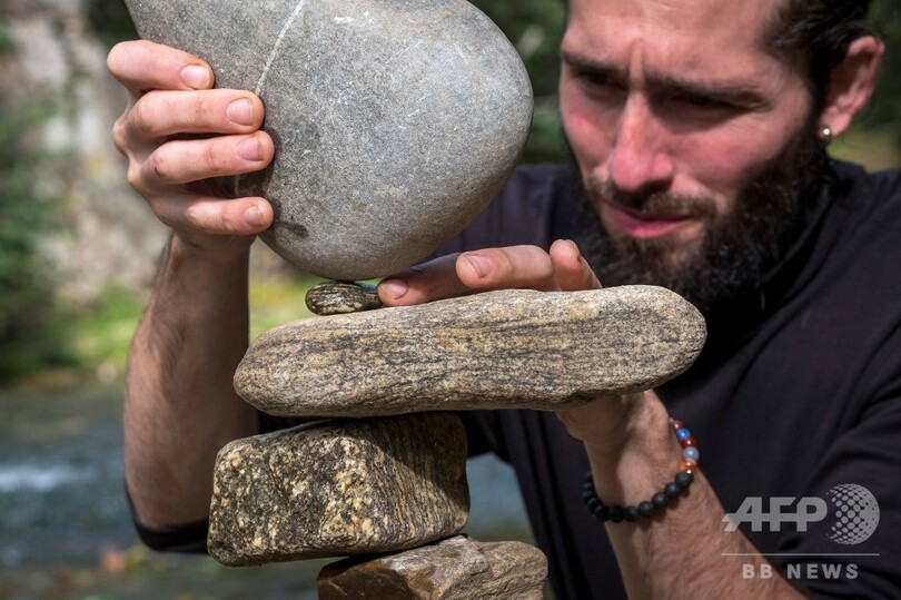 【1月3日 AFP】人間は太古の昔から石を積み重ねてきたが、石を「浮かび上がらせる」ことに力を注ぐ男性がいる。アーティストのSP・ランザ(SP Ranza)さん(33)だ。SP・ランザさんは「石のバランス」の達人で、2019年4月、英スコットランド東部ダンバー(Dunbar)で開催された「欧州石積み選手権(Europian Stone Stacking Championships)」で総合優勝した。