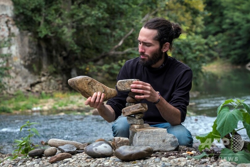 【1月3日 AFP】人間は太古の昔から石を積み重ねてきたが、石を「浮かび上がらせる」ことに力を注ぐ男性がいる。アーティストのSP・ランザ(SP Ranza)さん(33)だ。SP・ランザさんは「石のバランス」の達人で、2019年4月、英スコットランド東部ダンバー(Dunbar)で開催された「欧州石積み選手権(Europian Stone Stacking Championships)」で総合優勝した。