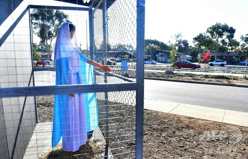 【12月13日 AFP】飼い葉おけに眠る乳飲み子イエス・キリスト(Jesus Christ)はアルミ製の保温シートに包まれ、聖母マリア(Mary)ともヨセフ(Joseph)とも引き離されて、それぞれ別のおりに閉じ込められている──米カリフォルニア州に、こんな衝撃的な降誕人形(クリブ)が登場した。