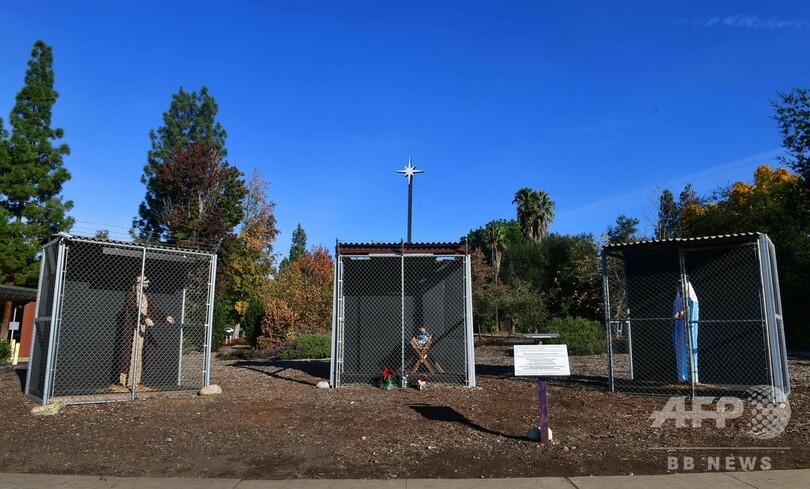 【12月13日 AFP】飼い葉おけに眠る乳飲み子イエス・キリスト(Jesus Christ)はアルミ製の保温シートに包まれ、聖母マリア(Mary)ともヨセフ(Joseph)とも引き離されて、それぞれ別のおりに閉じ込められている──米カリフォルニア州に、こんな衝撃的な降誕人形(クリブ)が登場した。